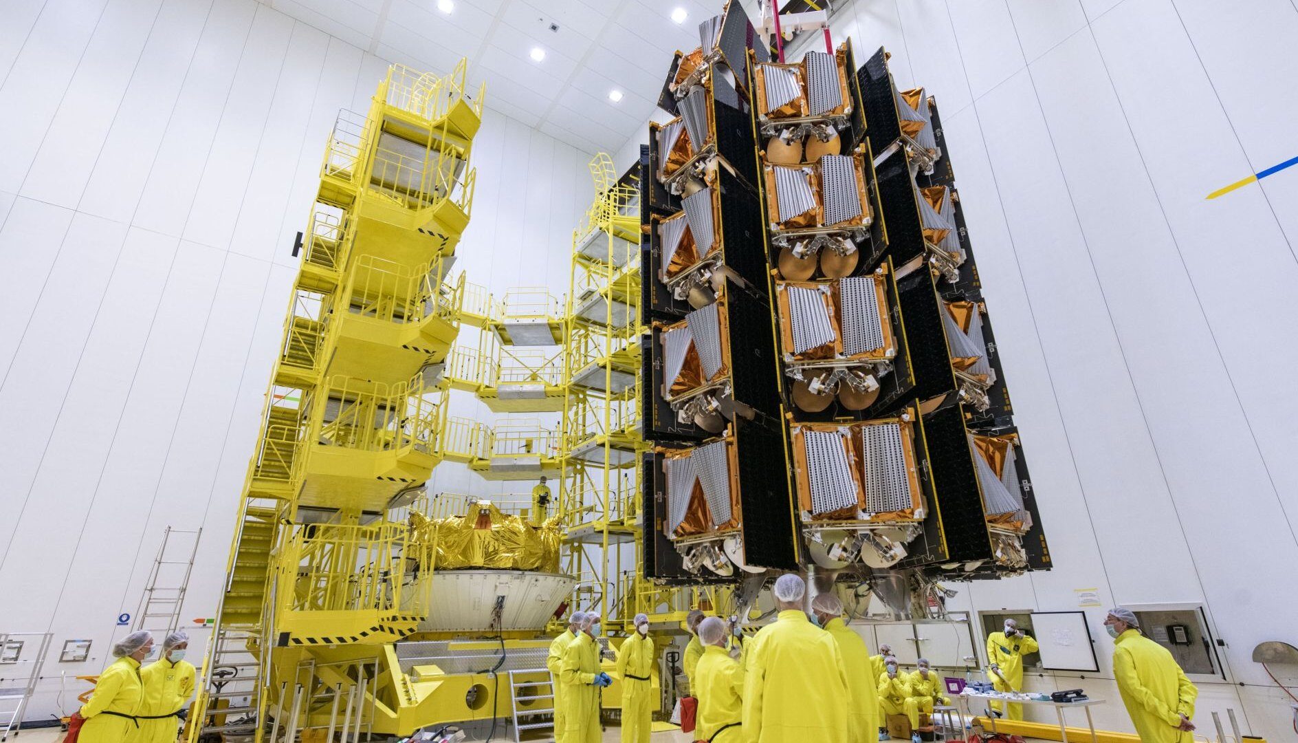 OneWeb aims to provide global Internet connectivity via a constellation of satellites in Low Earth Orbit (LEO). Over three years, Arianespace carried out 13 launches for OneWeb, placing 428 satellites in orbit at a sustained rate of 34 to 36 satellites per launch. The complex deployment of these satellites was made possible by the Smart Dispenser, an intelligent dispenser developed and manufactured by Arianespace, as well as the prior installation of the satellites on the dispenser tiers in the production plant.