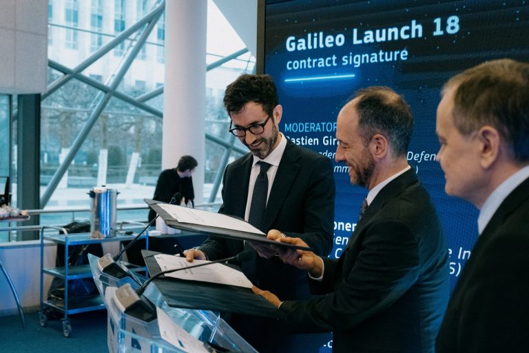 Read press release hereGalileo L18 signature in photos with David Cavaillolès, Arianespace CEO; Rodrigo da Costa, EUSPA Executive Director; Timo Pesonen, Director-General of DEFIS, European Commission