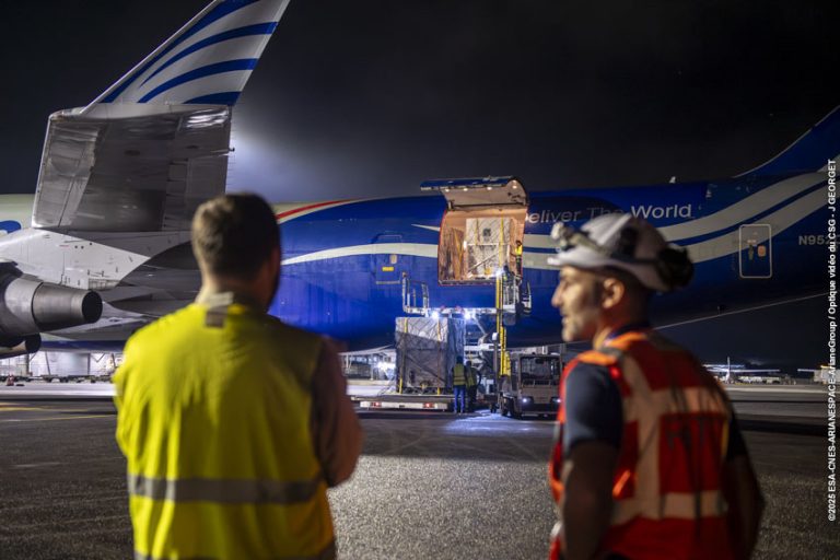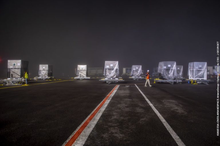 The first Amazon Leo satellites have landed in French Guiana, arriving from Florida and ready to begin the launch campaign of our very first Ariane 64 mission – the heavy-lift configuration of Ariane 6, powered by four P120C boosters.